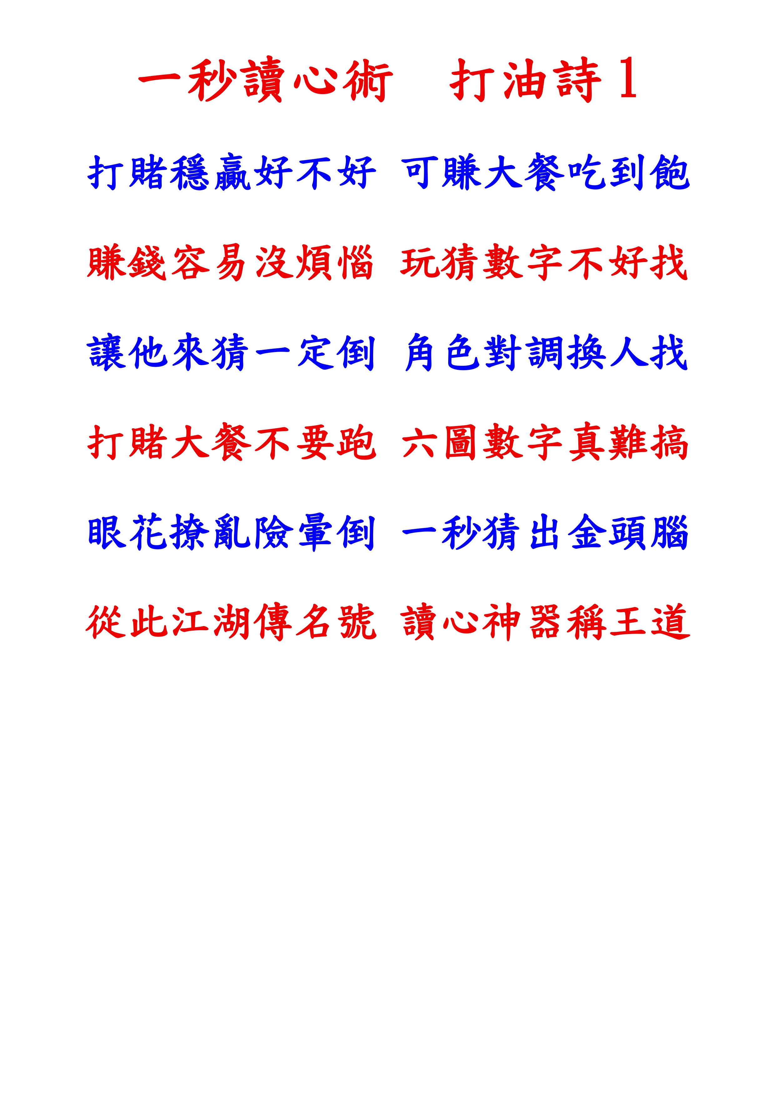 一秒讀心術 打油詩1